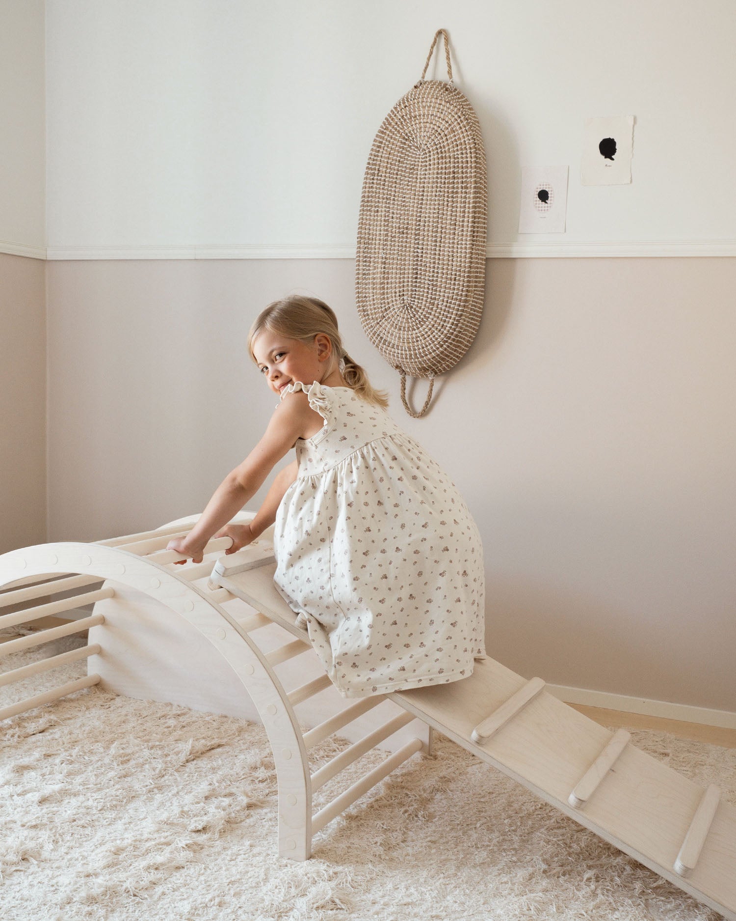 This climbing arch is a beautifully designed piece of children’s furniture that supports active, imaginative play while encouraging the development of coordination, gross motor skills, balance, and strength. It adapts to different ages and developmental stages, offering endless opportunities for movement and creativity.