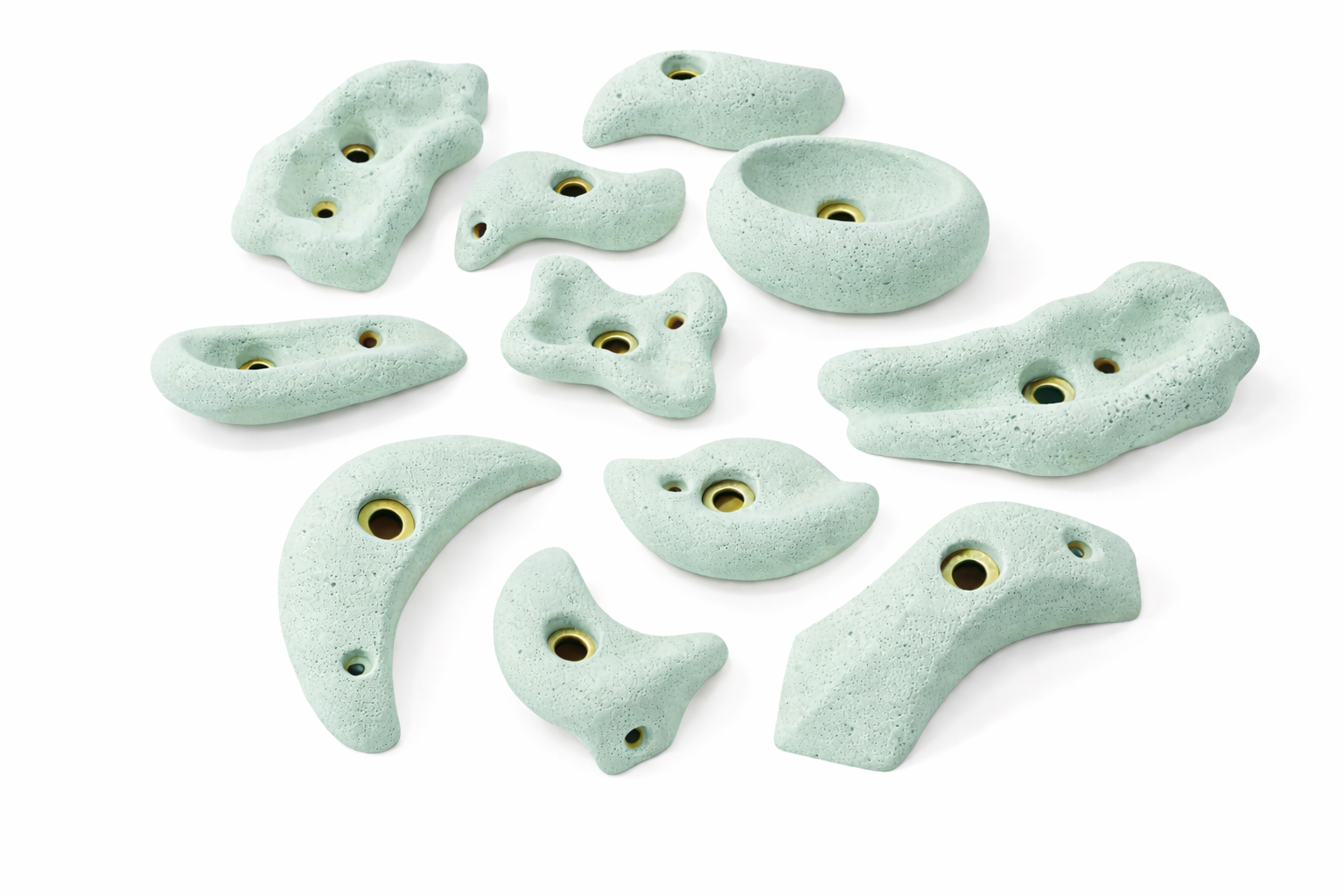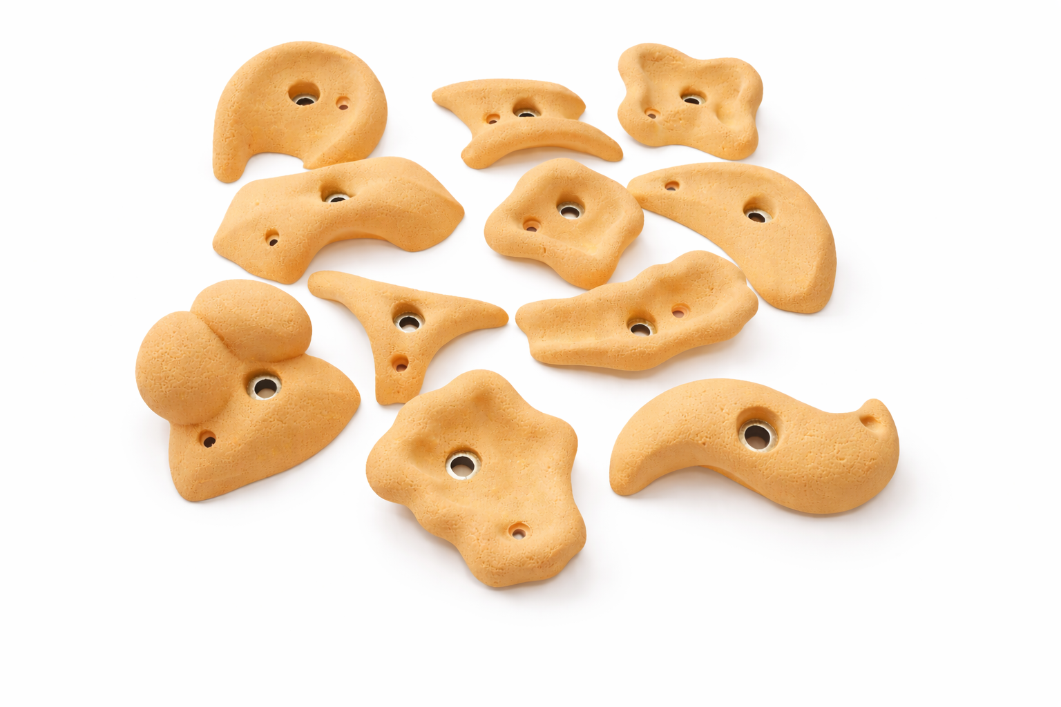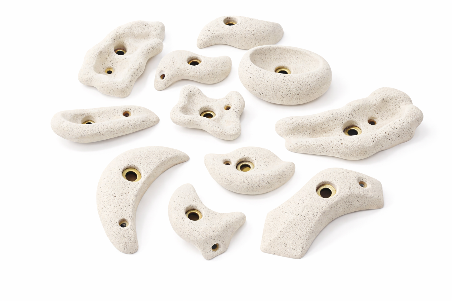 Climbing holds set is a base for using of any our climbing wall. Made of durable resin, mounted in holes prepared in our walls, provide the highest stability and complete safety during climbing.