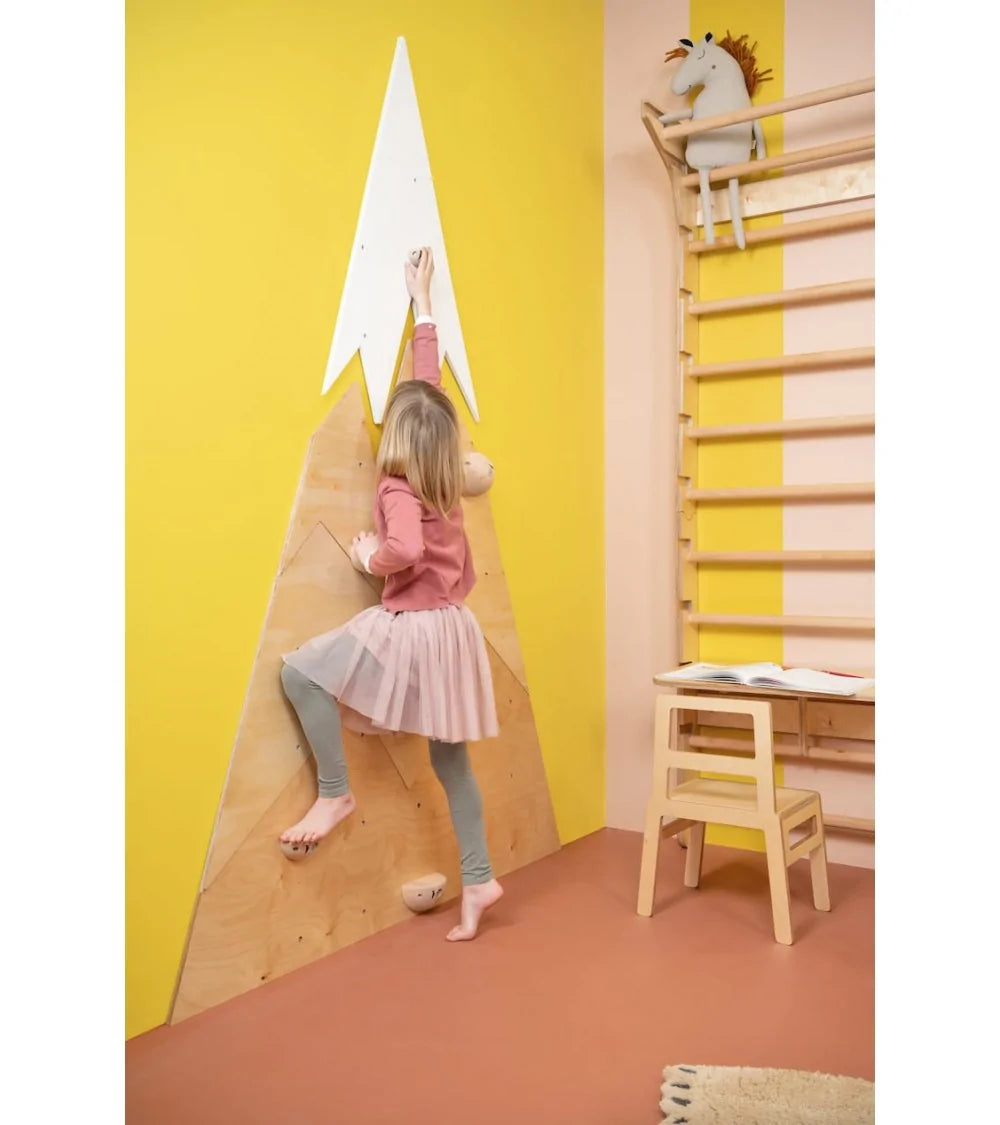 Our mountain-shaped climbing wall creates a space that stimulate both the body and your child imagination. The lightness of the form will make the MOUNTAINS fit perfectly into any children's interiors. The wall is available in 2 sizes, which combined create a beautiful mountain range that perfectly arranges the wall space.