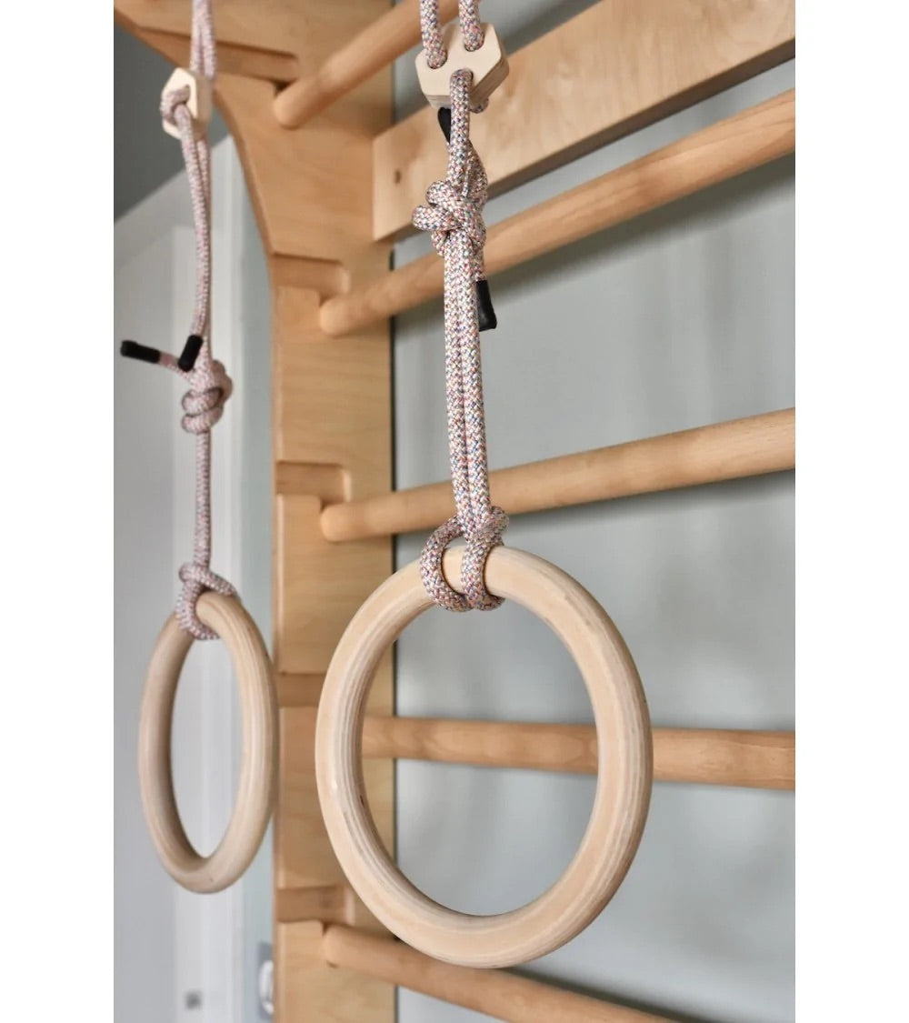 Our gymnastic rings’ measurements comply with the official standards of gym rings. For more detailed information and measurements check out „Product details”. Your NUKI rings come ready to use in a flatpack. Product intended for children over 3 years of age.