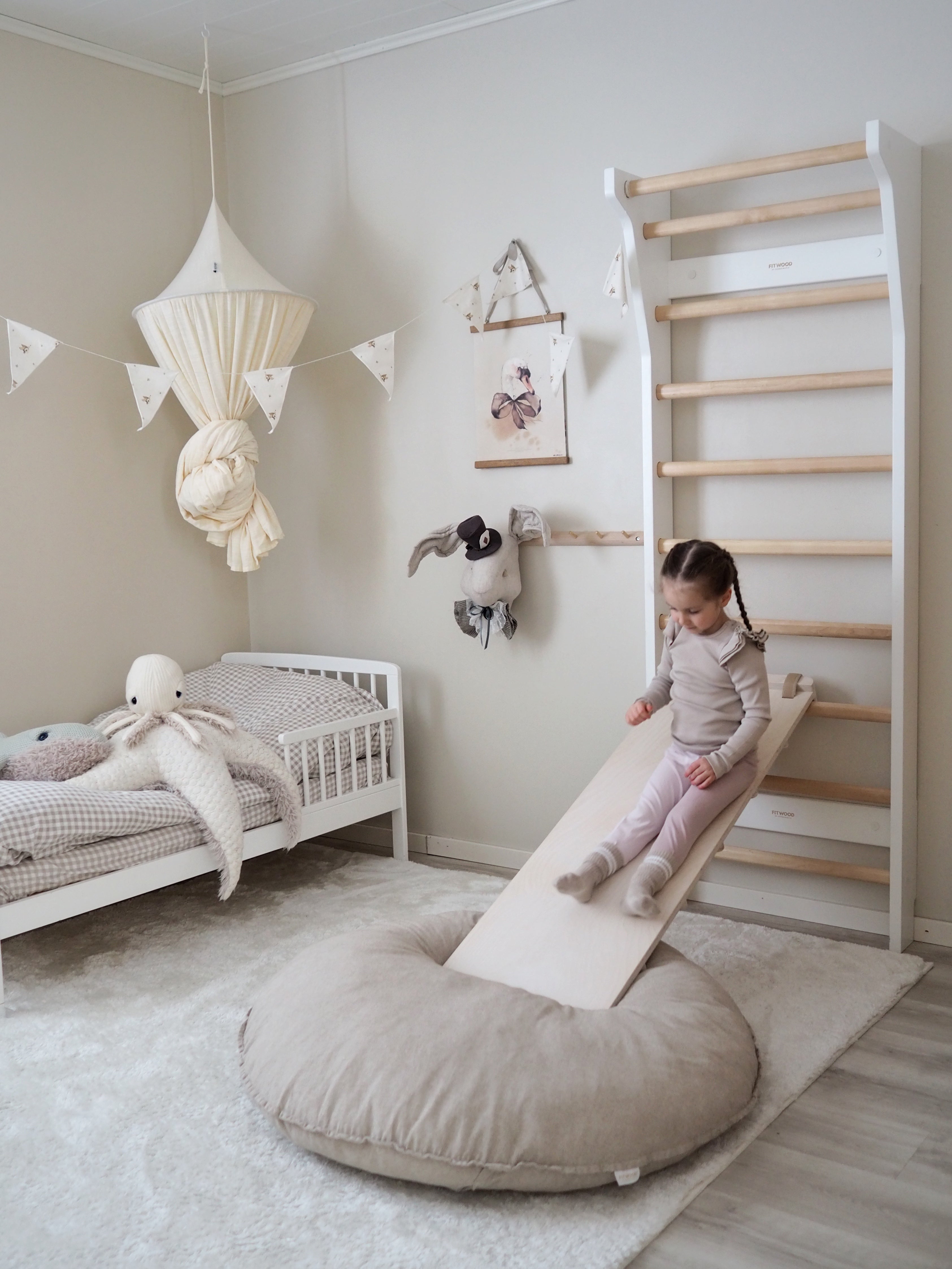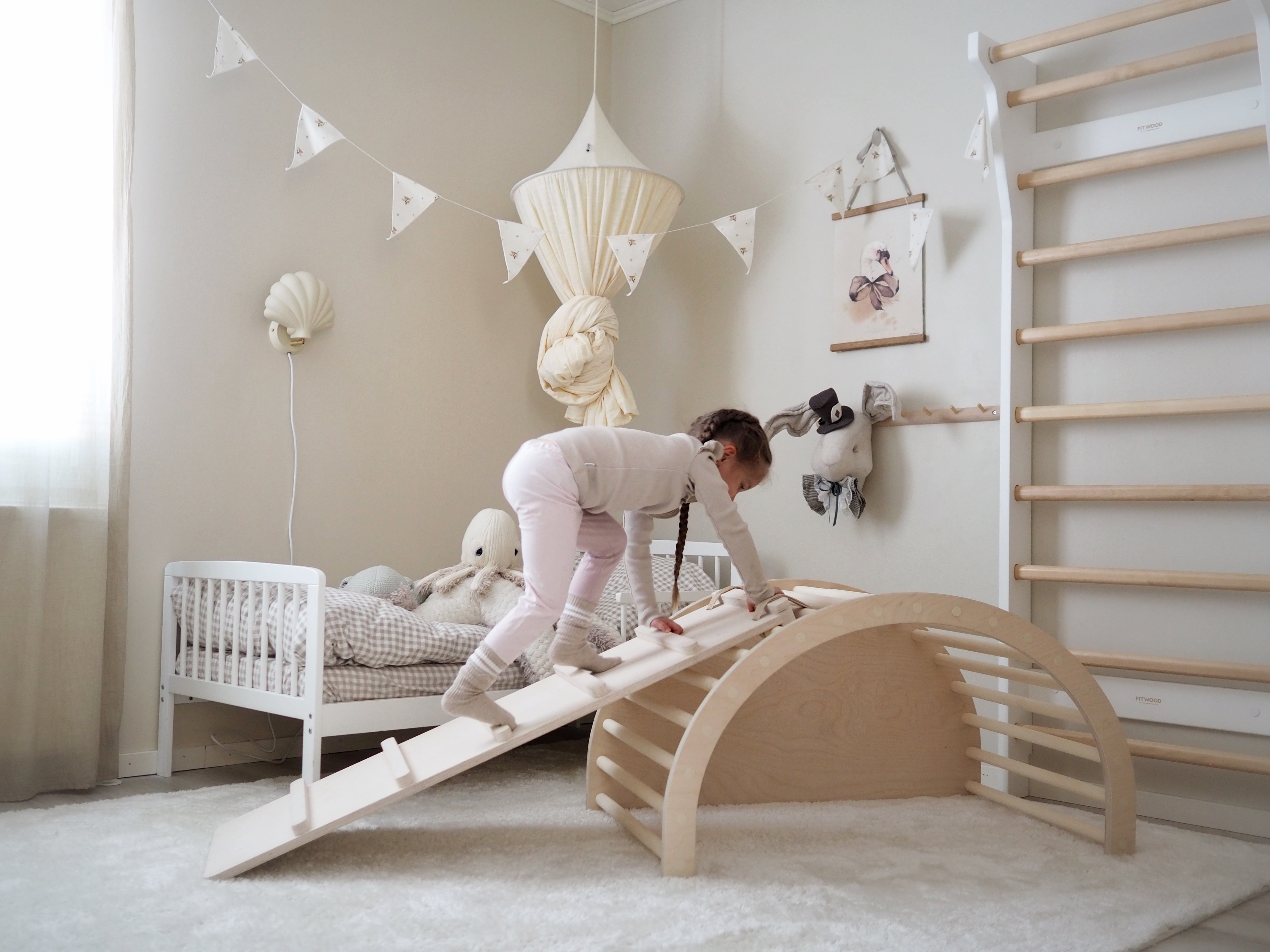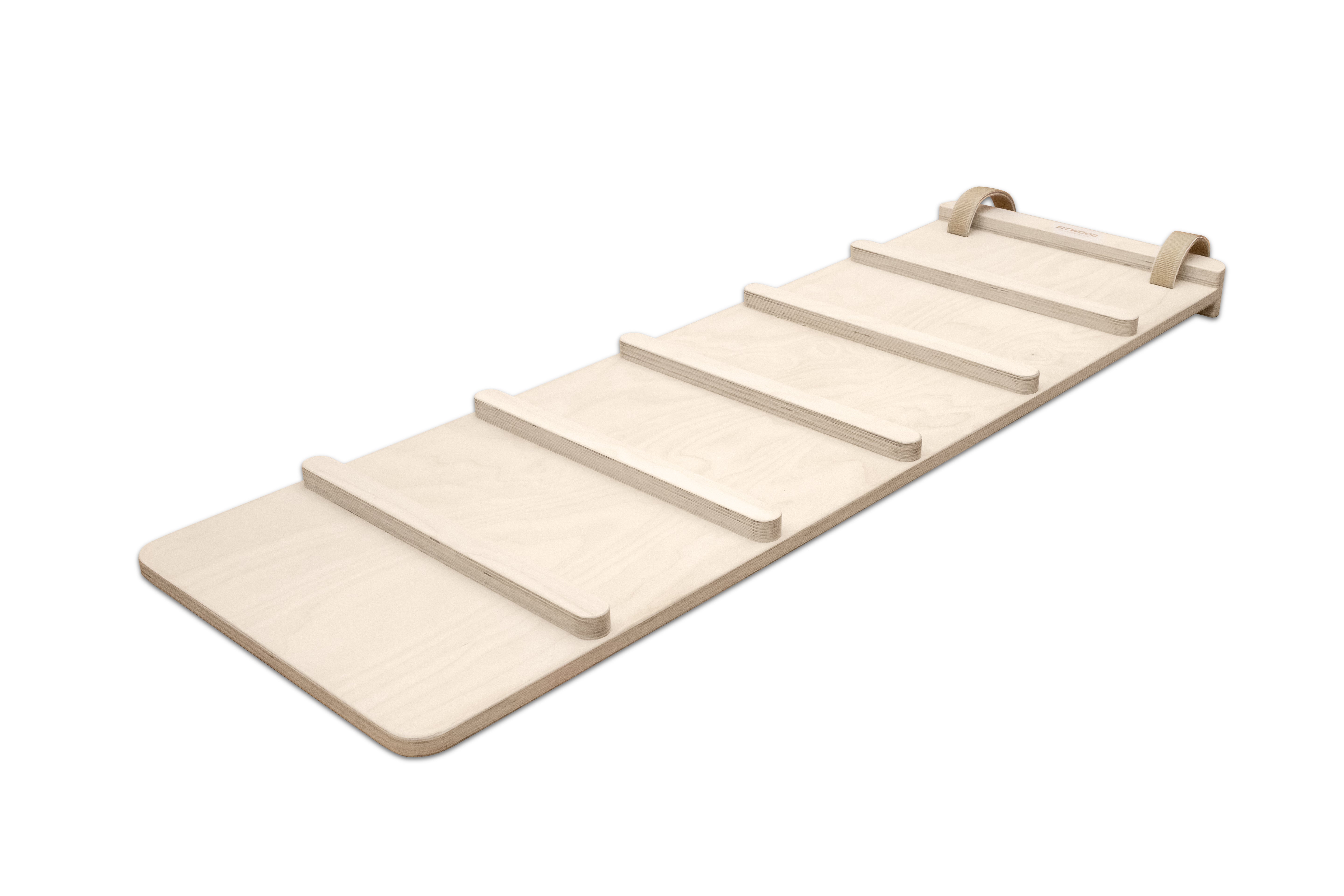 This improved version includes secure fastening straps that keep the ramp firmly in place, even during active and adventurous play. Designed to pair seamlessly with climbing arches and wall bars, it transforms familiar play equipment by adding a fun sliding surface on one side and a climbing board on the other.