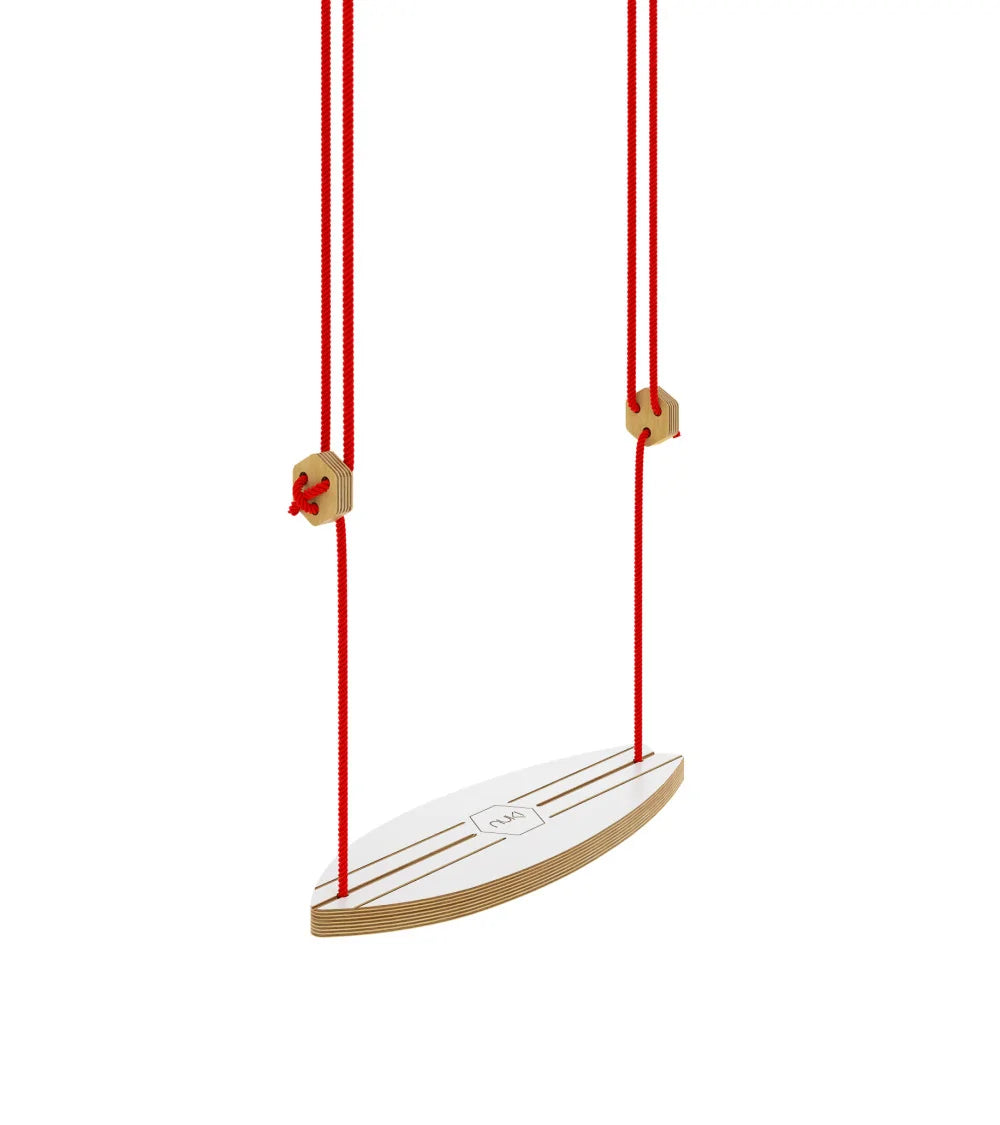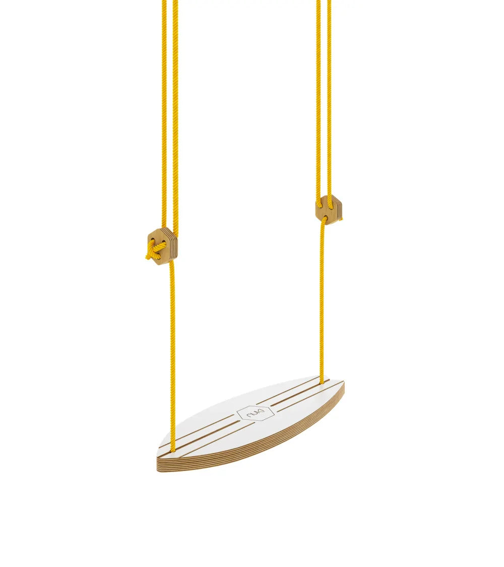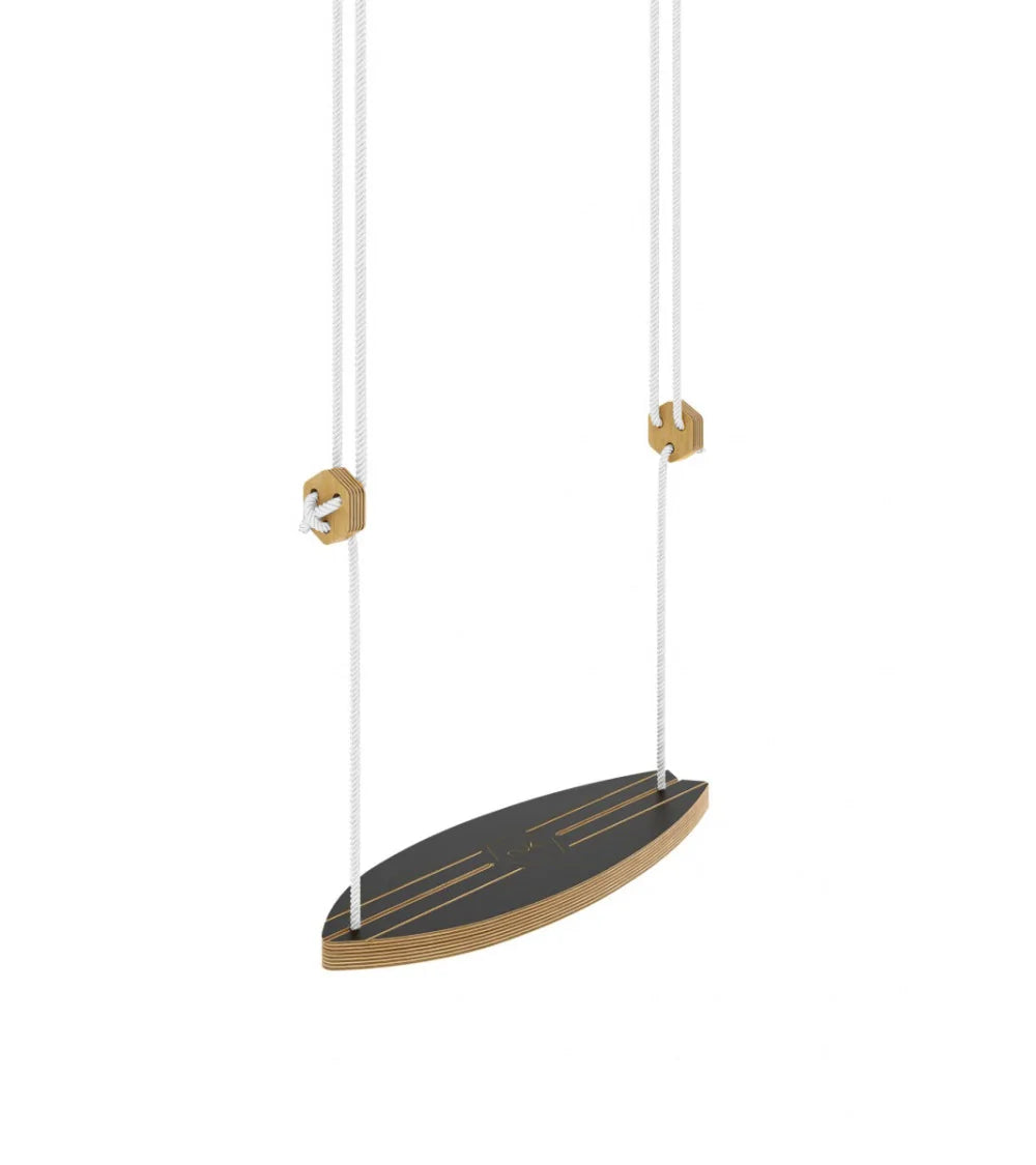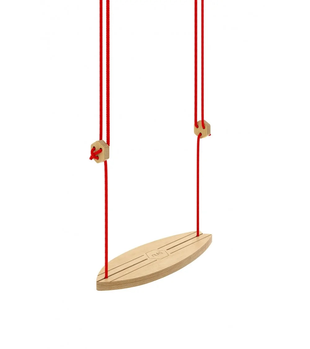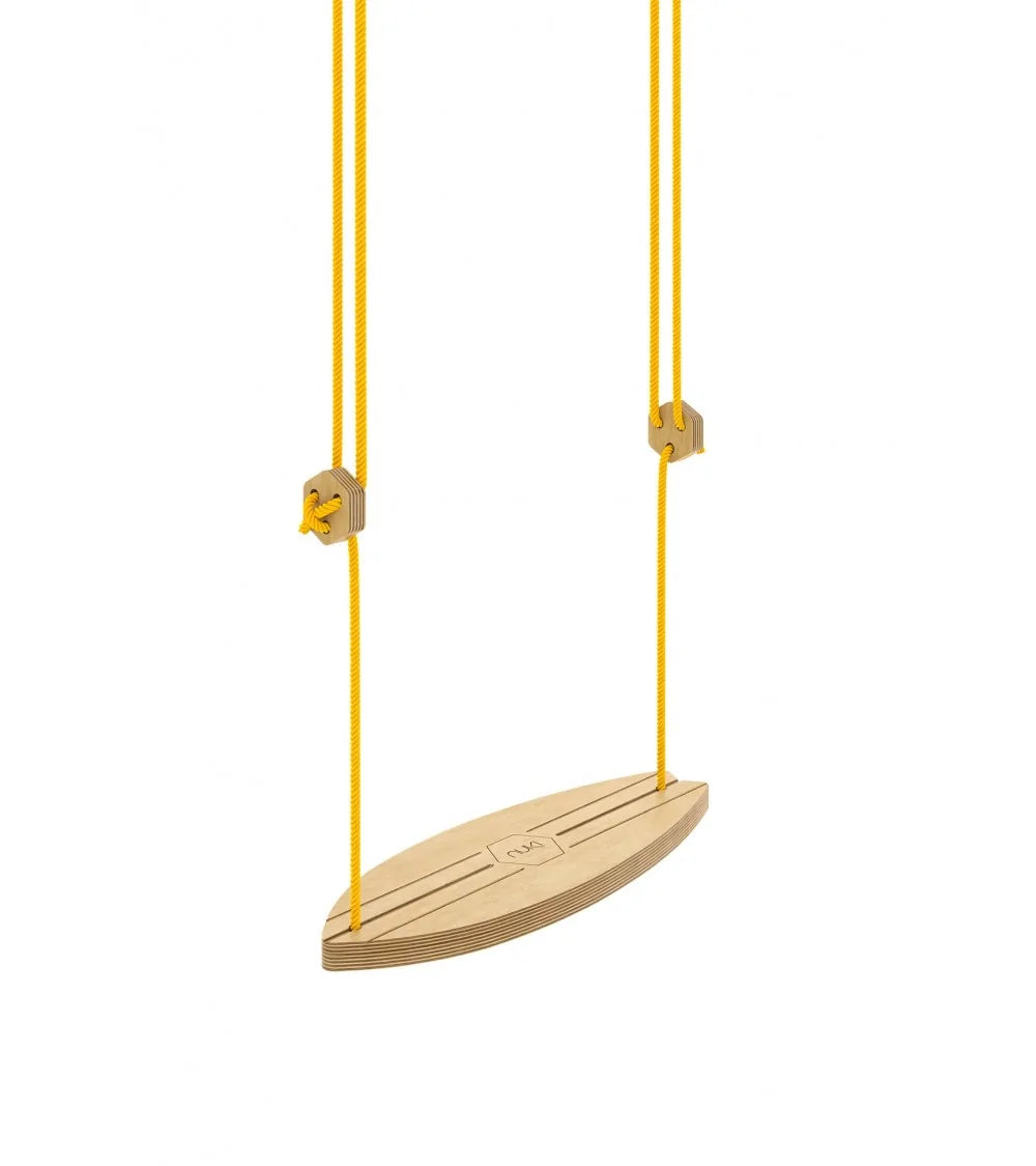 The manual grinding of the wooden edges of the NUKI swing emphasizes its naturalness, quality of workmanship, and Scandinavian style. Birch plywood and an extremely durable rope ensure complete safety during all gymnastics.