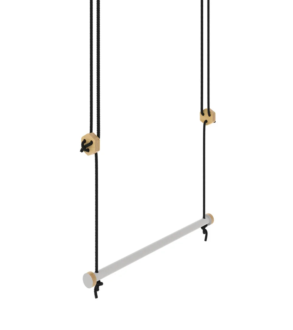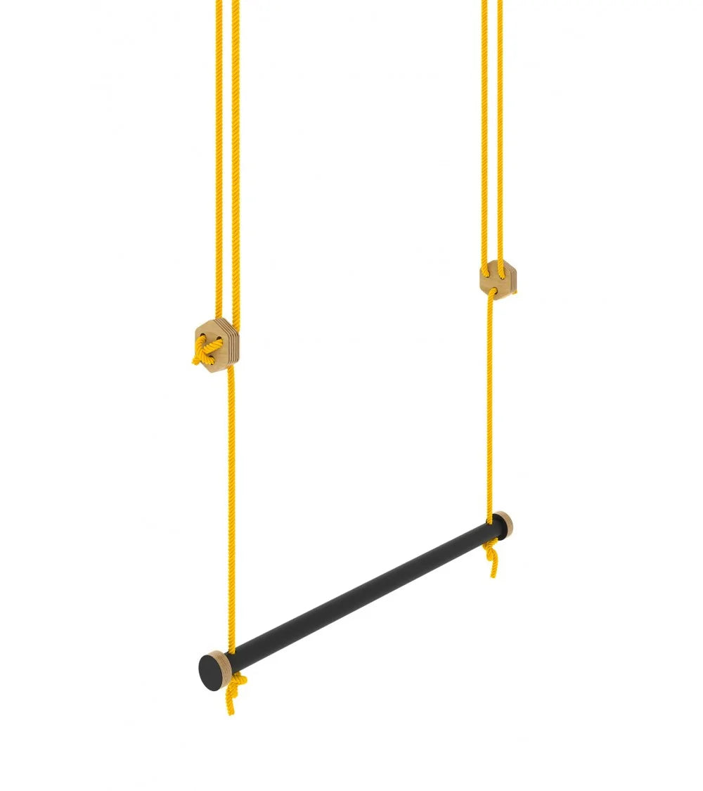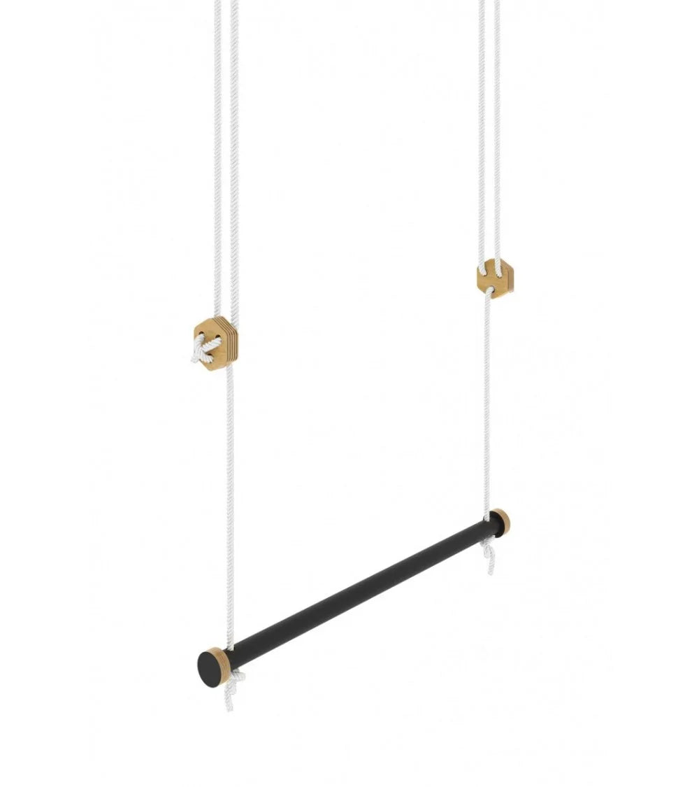 The manual grinding of the wooden edges of the swing emphasizes its naturalness, quality of workmanship, and Scandinavian style. Birch plywood and an extremely durable rope ensure complete safety during all gymnastics.