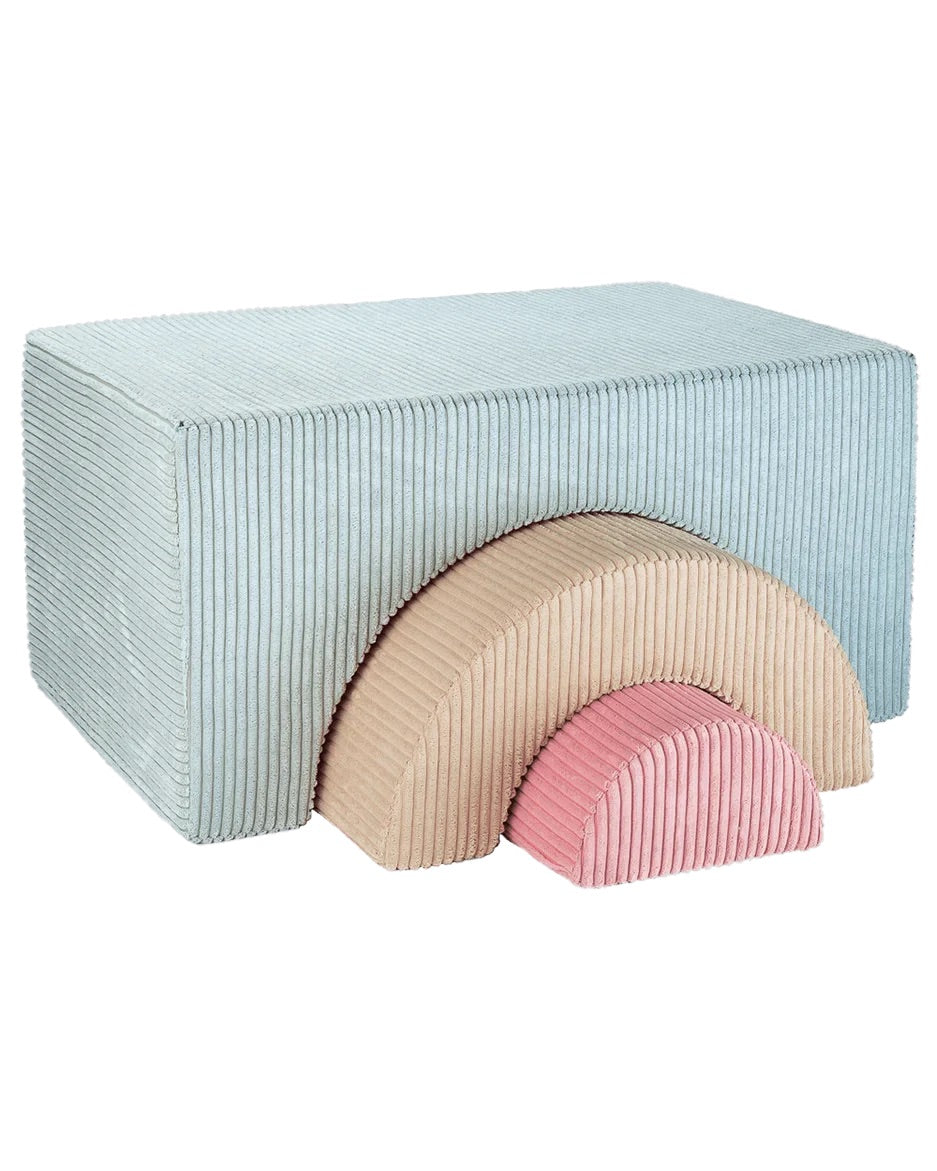 The Wigiwama Playset is a modular soft play set, designed to spark endless creativity. With three different-shaped pieces, kids can build, stack, or transform it into a chair, table, play fort, or stepping stones. Thoughtfully made for kids, this versatile and engaging set encourages imaginative adventures, active play, and social interaction.