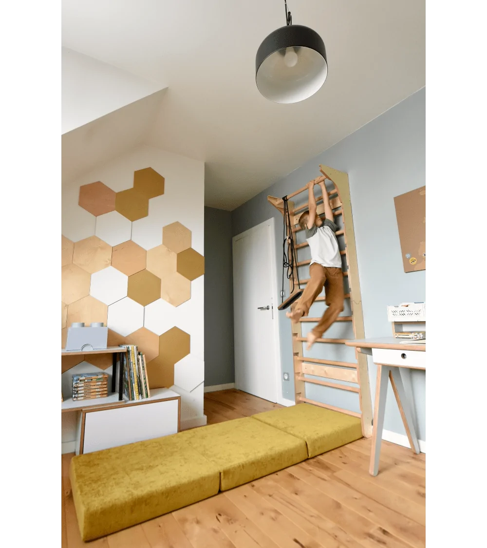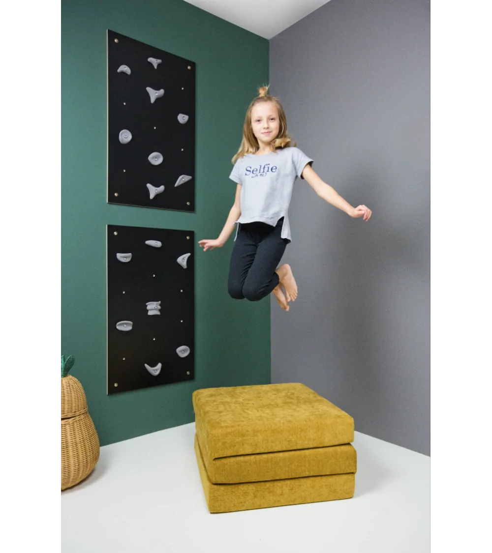 The S ZONE is by NUKI’s take on the classic and well-known foldable mattress. The three layers effortlessly transform into a wide range of forms that encourage to hours of play and quality time for the whole family. Use it for practicing stairs and levels, crawling through tunnels and somersaults. This shapely form can become a coffee table, a comfortable pouf in the living room, a footstool, or a guest bed when there is no space on a daily basis.