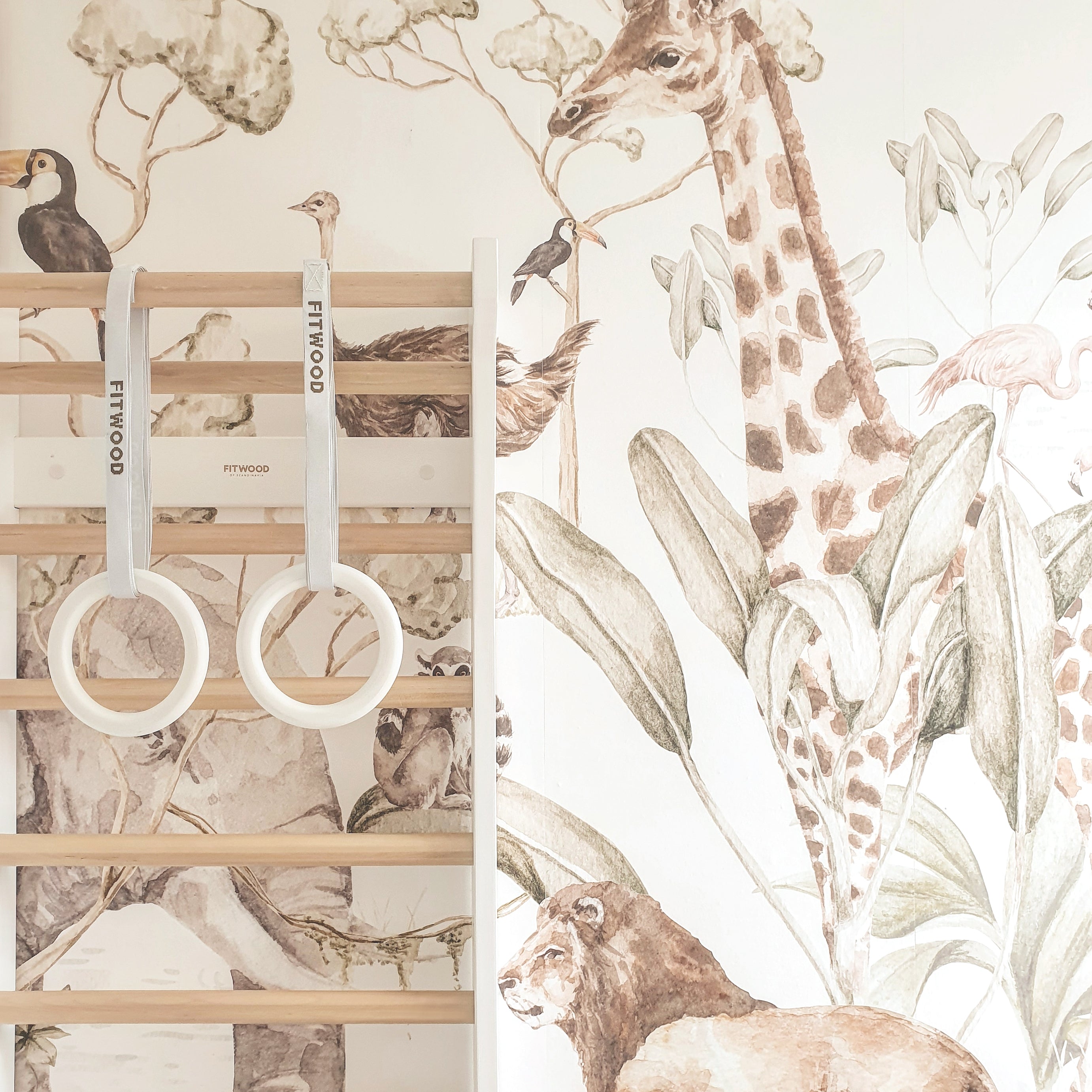 Kid-sized wooden gym rings designed for safe, playful movement and early physical development.
